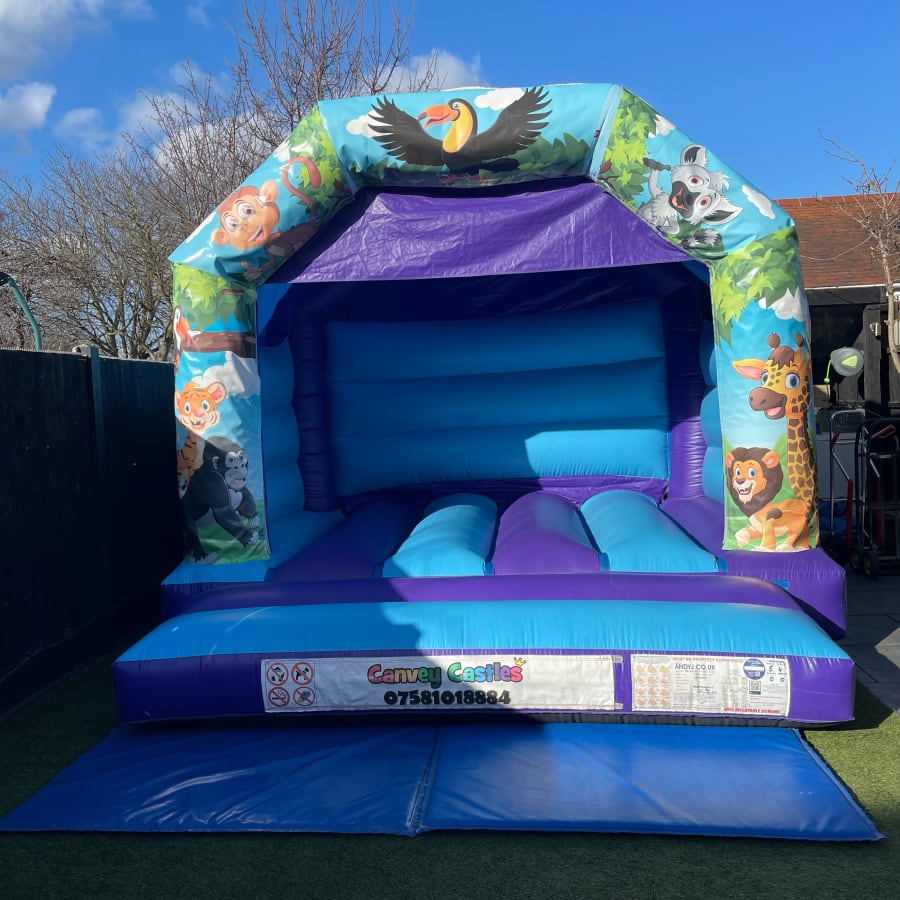 12ft x 12ft Light Blue and Purple Jungle Bouncy Castle in Essex