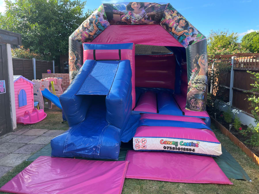 Ready to make your event unforgettable? Contact Canvey Castles today to reserve your 12ft x 17ft Pink And Blue Encanto Slide Combo Bouncy Castle in Essex. Our friendly team is here to assist with booking inquiries, setup, and ensuring a hassle-free experience.