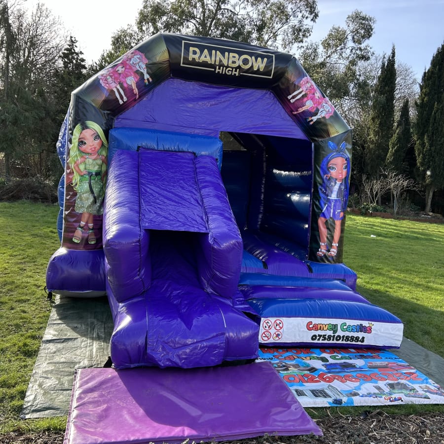Don't miss out on the opportunity to make your event extraordinary. Book the 12ft x 17ft Blue and Purple Rainbow High Slide Combo Bouncy Castle in Essex today and let the celebrations begin!