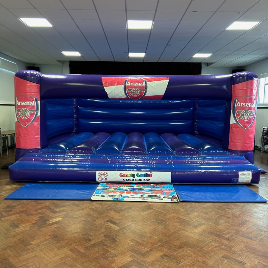 Make your event unforgettable with our 19ft x 18ft Blue and Purple Arsenal Bouncy Castle (low height)! This vibrant and exciting bouncy castle is sure to be the highlight of any party or gathering in Chelmsford, Southend, Brentwood, or anywhere in Essex.