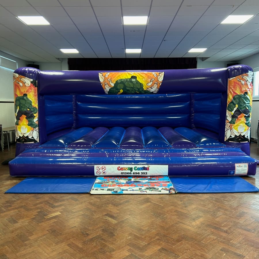 Don't miss out on the opportunity to elevate your party with the 19ft x 18ft Blue and Purple Hulk Bouncy Castle. Contact us today to secure this exciting rental for your event in Essex!