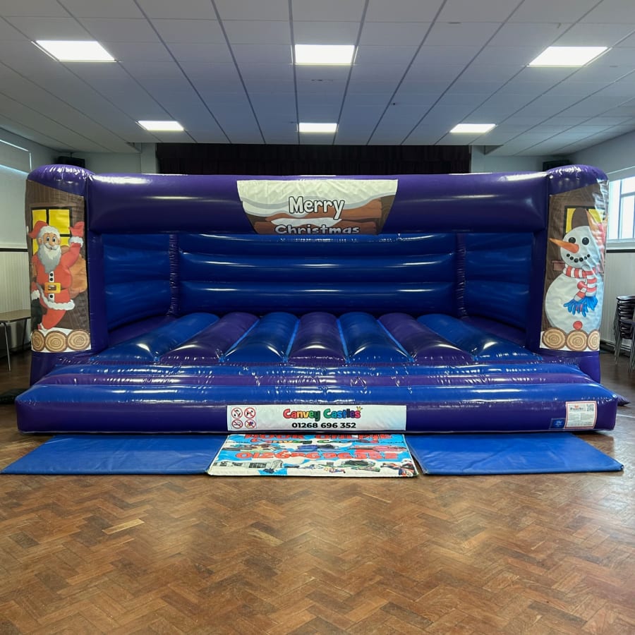Make your Christmas party in Chelmsford, Southend, Brentwood, and Essex truly merry with our festive 19ft x 18ft Blue and Purple Merry Christmas Bouncy Castle. Perfect for low-height venues, this colorful inflatable castle will bring joy and entertainment to your event.