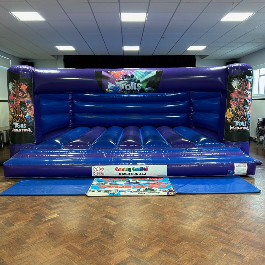 19ft x 18ft Blue and Purple Trolls World Tour Bouncy Castle (low height) in Essex