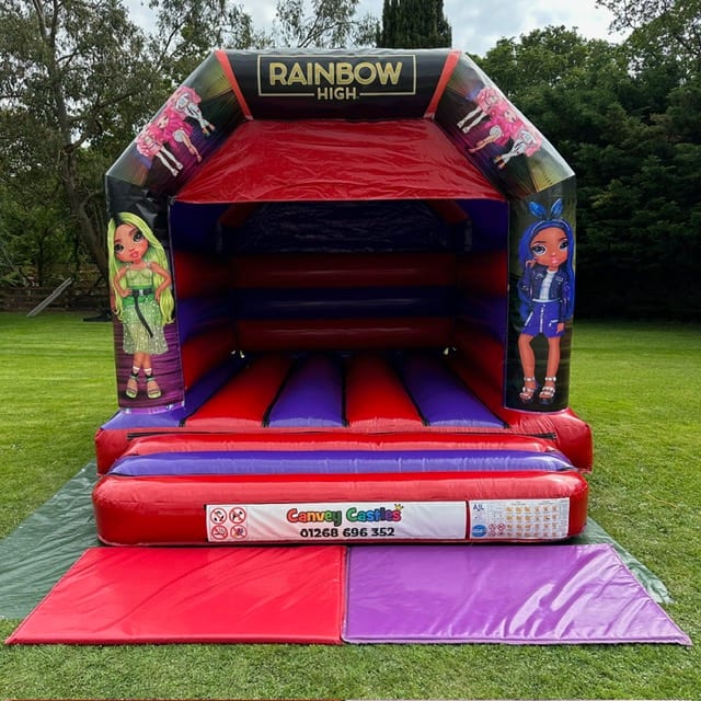 12ft x 15ft red and purple Rainbow High Bouncy Castle