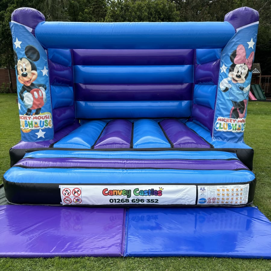 Don't miss the opportunity to make your event unforgettable. Our party rentals Essex 12ft x 12ft Blue and Purple Mickey Mouse Clubhouse Low Height Bouncy Castle in Essex is available for booking now. Contact us today to secure your date and ensure a day filled with smiles, laughter, and joy!