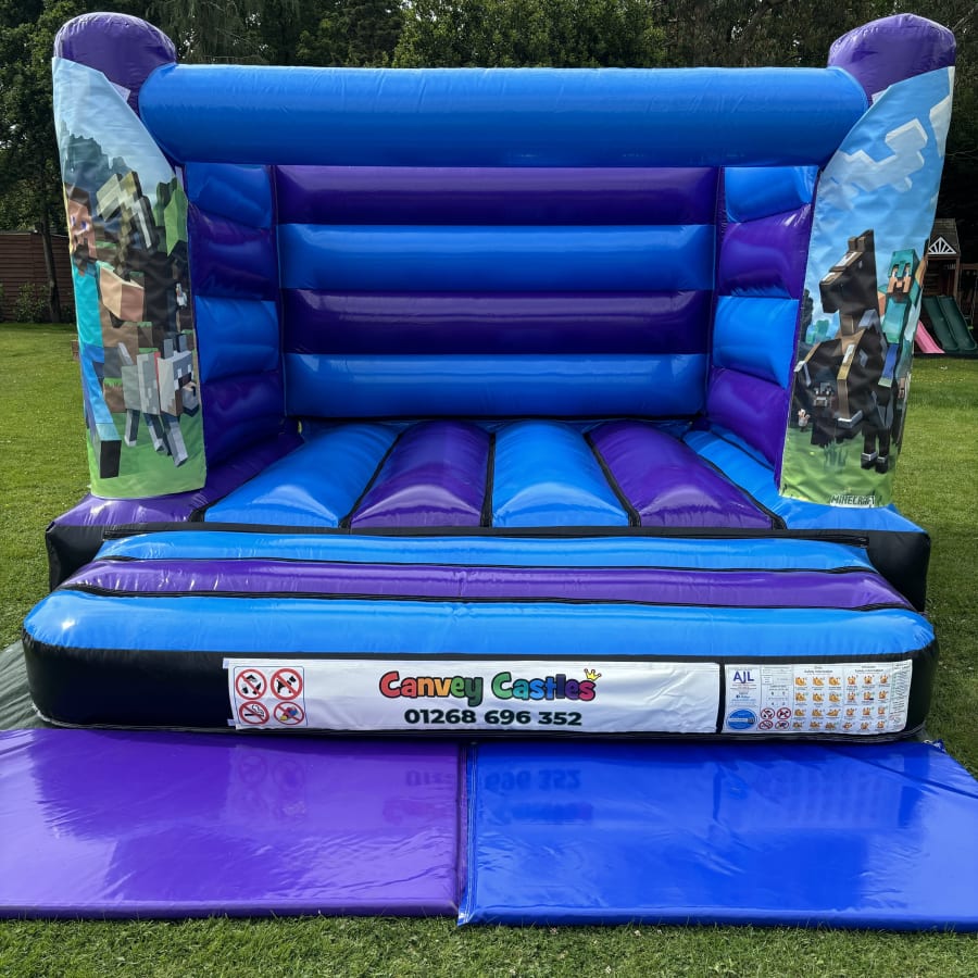 Don't miss out on the opportunity to create a memorable event. Secure the 12ft x 12ft Blue and Purple Minecraft Low Height Bouncy Castle in Essex for your next gathering. Contact us now to check availability and reserve your date. Let us help you bring the excitement and joy of Minecraft to your special occasion!