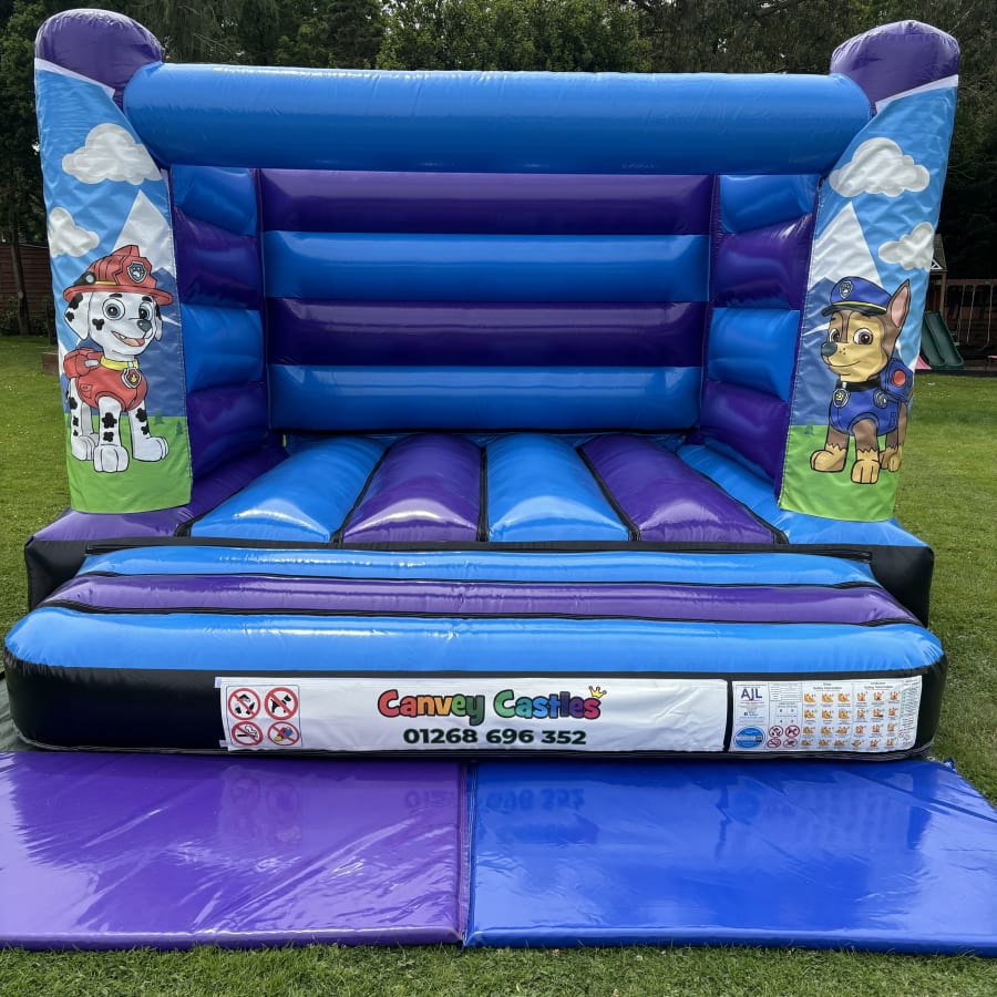 Looking for the perfect entertainment to make your child's party unforgettable? Our 12ft x 12ft Blue and Purple Paw Patrol Low Height Bouncy Castle in Essex is a must-have addition to your celebration. Designed with vibrant blue and purple colors and featuring beloved Paw Patrol characters, this bouncy castle will capture the hearts of young party-goers instantly!