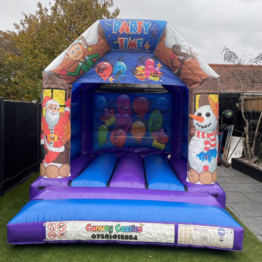 10ft x 12ft Blue and Purple Merry Christmas Bouncy Castle in Essex