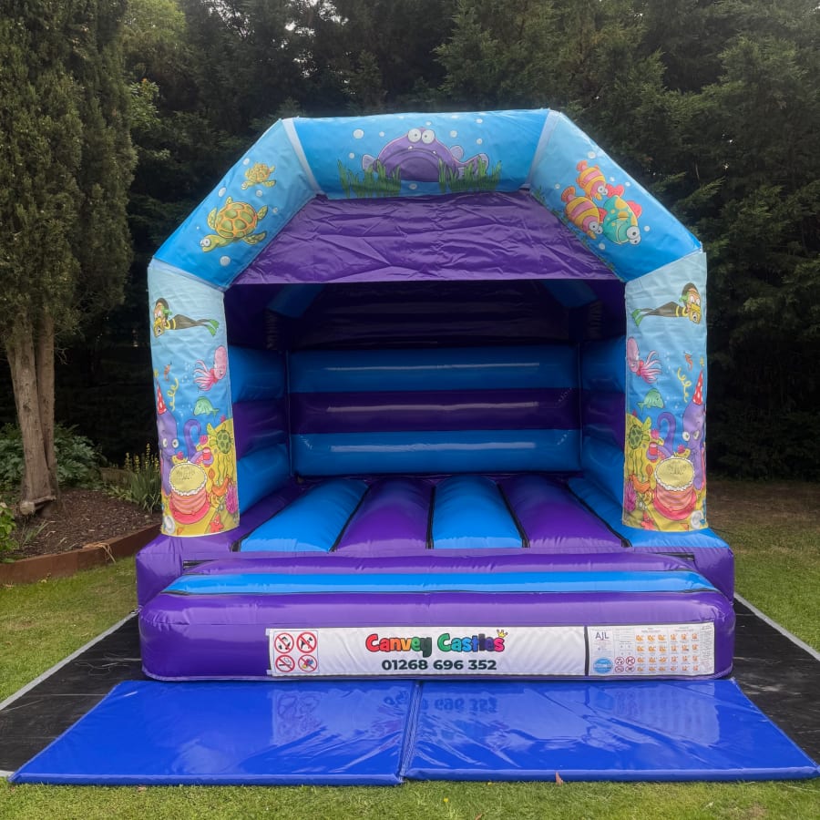 12ft x 12ft Light Blue and Purple Under the Sea Bouncy Castle