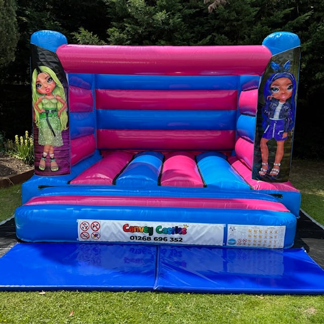 Bring Magic to Your Event with the 12ft x 12ft Pink and Blue Low Height Rainbow High Bouncy Castle