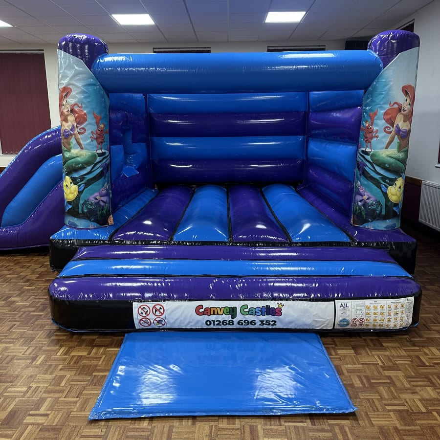 Reserve the 16ft x 17ft Blue and Purple Little Mermaid Low Height Slide Combo Bouncy Castle today for memorable, safe fun. We specialise in party rentals essex and offer fast quoting, delivery, and professional setup. Contact us now to check availability and secure your date.