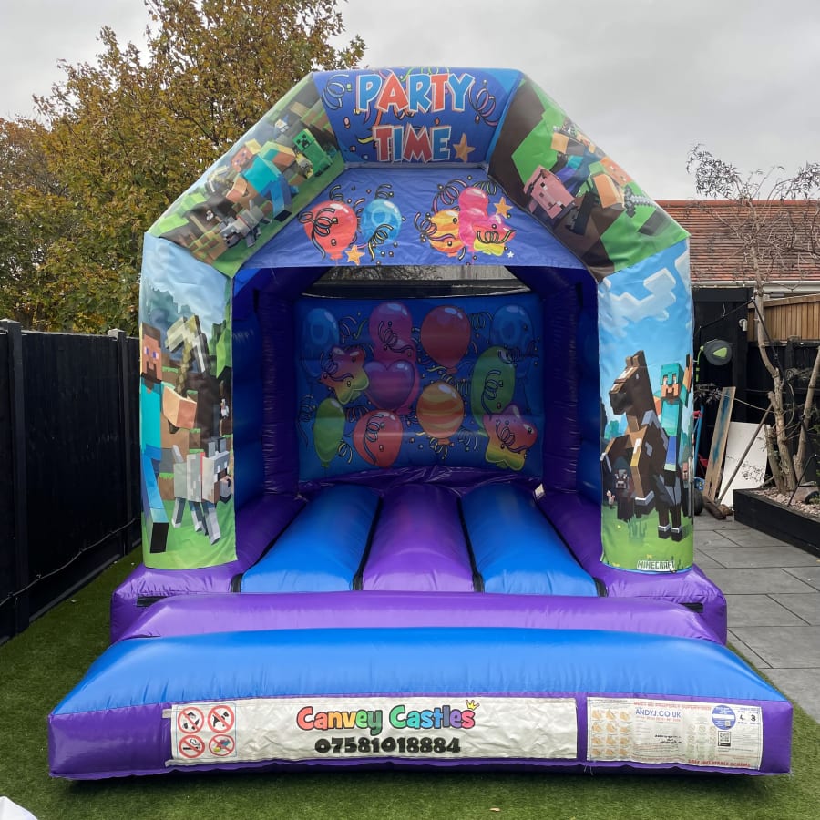10ft x 12ft Blue and Purple Minecraft Bouncy Castle in Chelmsford, Southend, Brentwood, and Essex