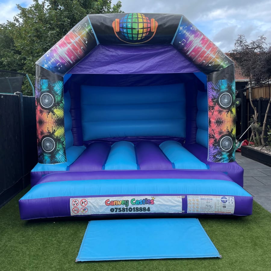 12ft x 12ft Light Blue and Purple Disco Bouncy Castle in Essex