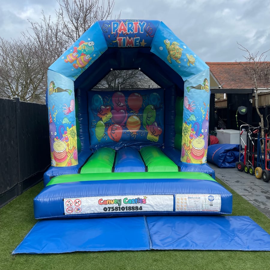 10ft x 12ft Green and Blue Under The Sea Bouncy Castle in Chelmsford, Southend, Brentwood, and Essex