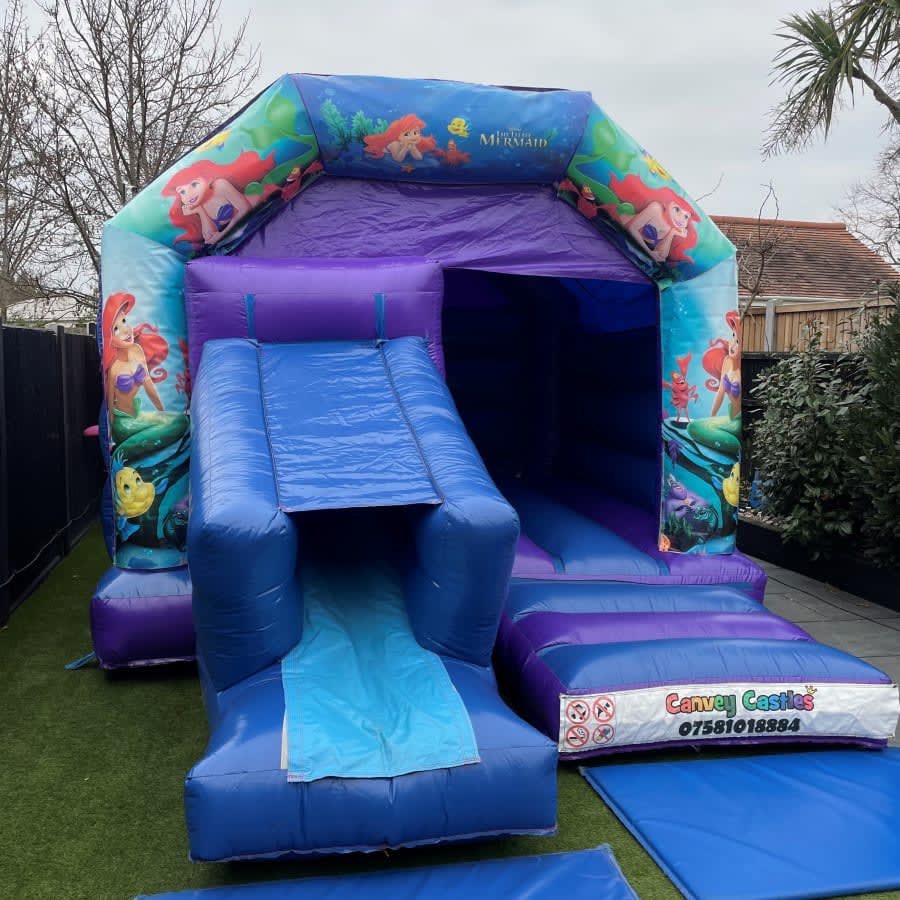 Don't miss out on the opportunity to add a touch of magic to your next event. Contact us today to reserve the 12ft x 17ft Blue and Purple Little Mermaid Slide Combo Bouncy Castle in Essex. Our friendly team is ready to assist you in making your party dreams come true. Dive into the joy and excitement of the underwater world and create memories that will last a lifetime!