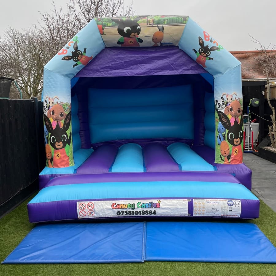 Book our 12ft x 12ft Light Blue and Purple Bing Bunny Bouncy Castle today and make your child’s party a hit!