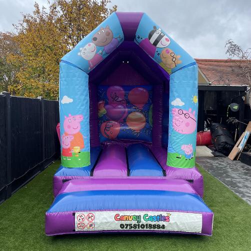 8ft x 12ft Blue and Purple Peppa Pig Design 2 Bouncy Castle in Essex