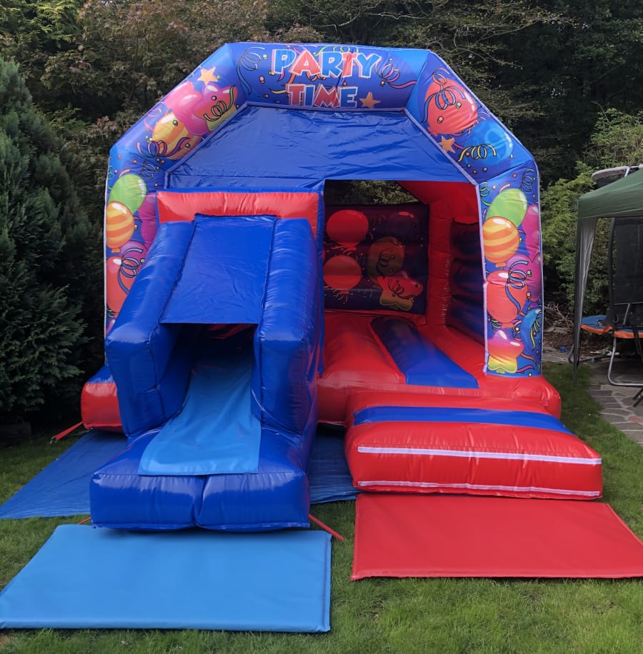 Whether you're hosting a birthday party in your backyard or organizing a community event in Essex, the Blue and Red Party Time Slide Combo Bouncy Castle is a versatile choice that caters to various themes and settings. Its vibrant colors and engaging features are sure to delight guests of all ages, creating memories that will last a lifetime.