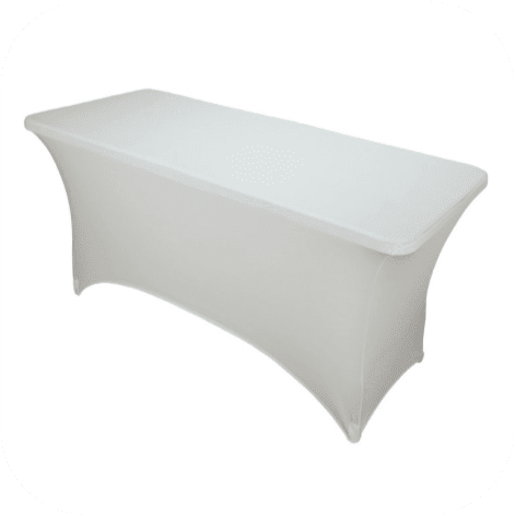 Rent our 6ft Trestle Spandex White Table Cover today and impress your guests with a beautifully dressed table that sets the perfect ambiance for your special occasion.