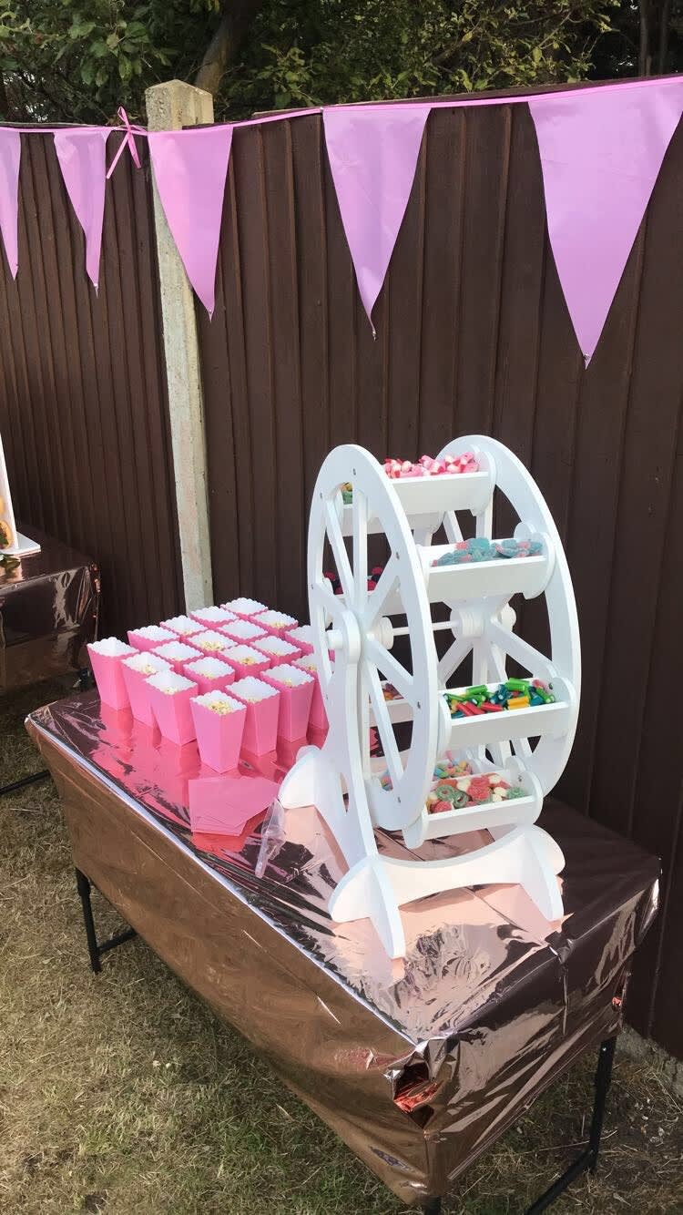 Are you looking for a unique and charming addition to your party in Essex? Look no further than the 8 Pocket White Hearts Sweet Ferris Wheel. Perfect for events in Chelmsford, Brentwood, Southend, and across Essex, this delightful sweet ferris wheel will add a touch of whimsy and sweetness to your celebration.
