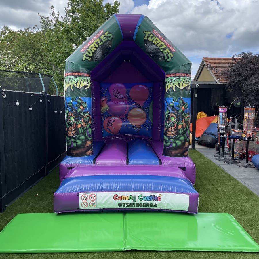 8ft x 12ft Blue and Purple Teenage Mutant Ninja Turtles Bouncy Castle in Essex, Chelmsford, Southend, and Brentwood