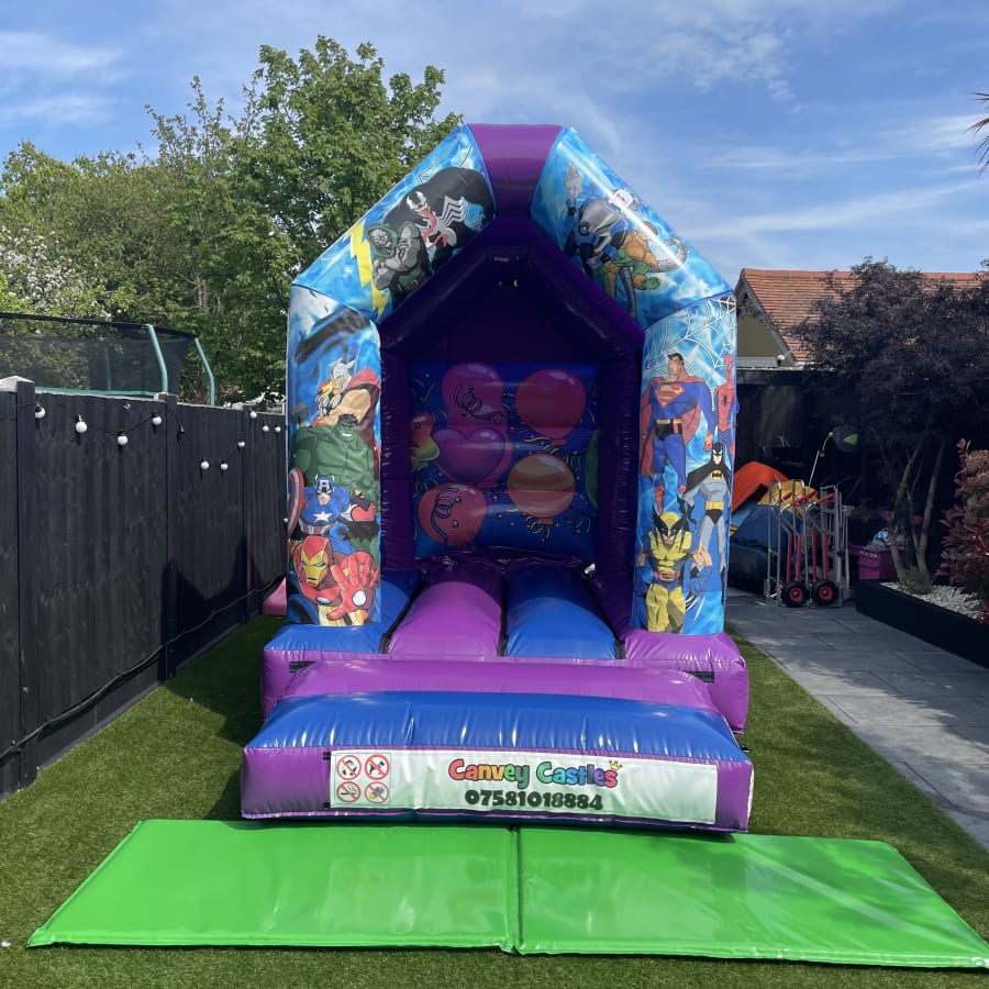 We offer hassle-free delivery and setup of the 8ft x 12ft Blue and Purple Avengers Bouncy Castle in Essex. Our team is dedicated to making your rental experience smooth and stress-free, allowing you to focus on enjoying the event. All you need to do is book with us, and we'll handle the rest, ensuring your bouncy castle is ready for action when your guests arrive.