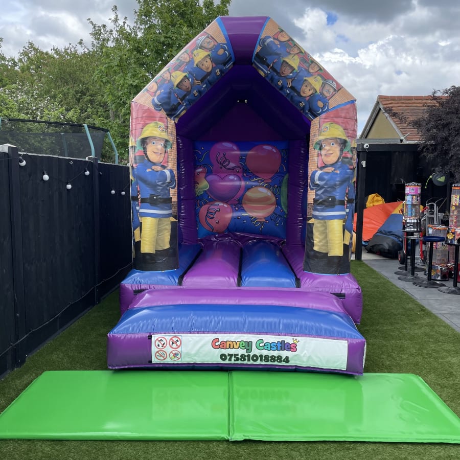 8ft x 12ft Blue and Purple Fireman Sam Bouncy Castle in Chelmsford, Brentwood, Southend and Essex
