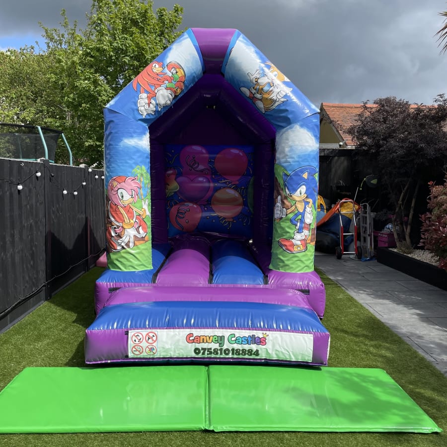 8ft x 12ft Blue and Purple Sonic the Hedgehog Bouncy Castle in Essex