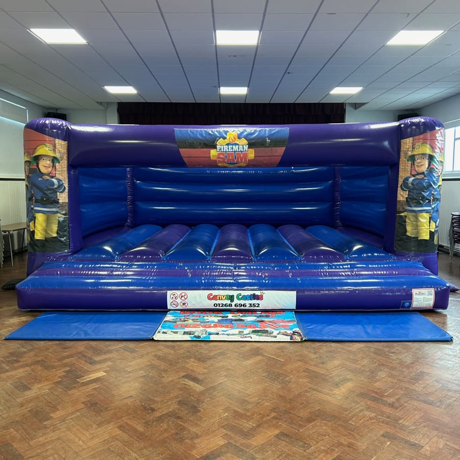 19ft x 18ft Blue and Purple Fireman Sam Bouncy Castle (low height)