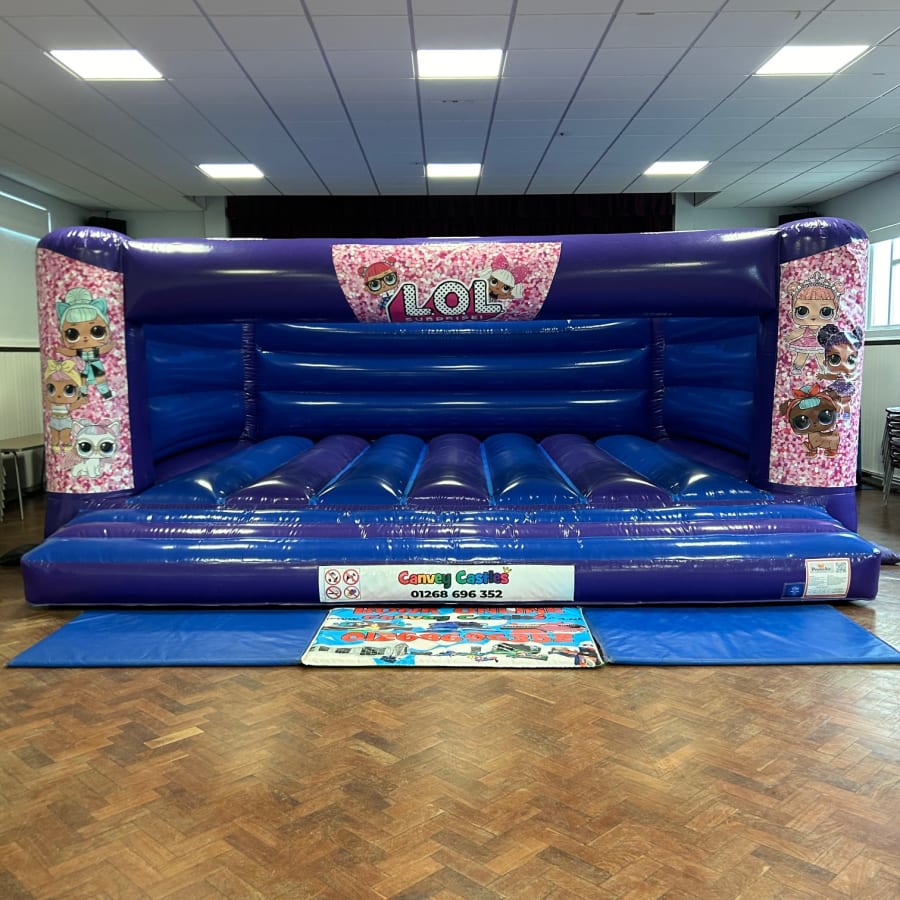 Fun-Filled Adventures Await with the 19ft x 18ft Blue and Purple LOL Doll Surprise 2 Bouncy Castle in Essex!