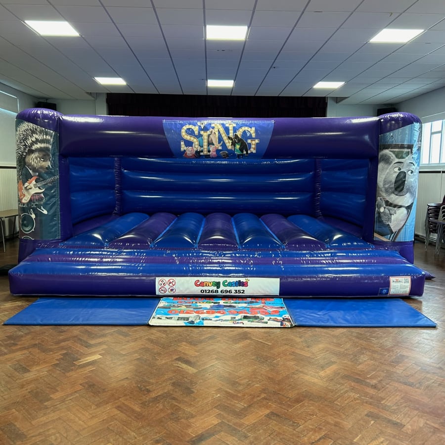 Book Your 19ft x 18ft Blue and Purple Sing Bouncy Castle Today