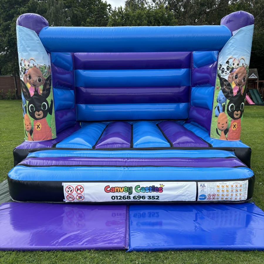 12ft x 12ft blue and purple Bing Bunny low height bouncy castle