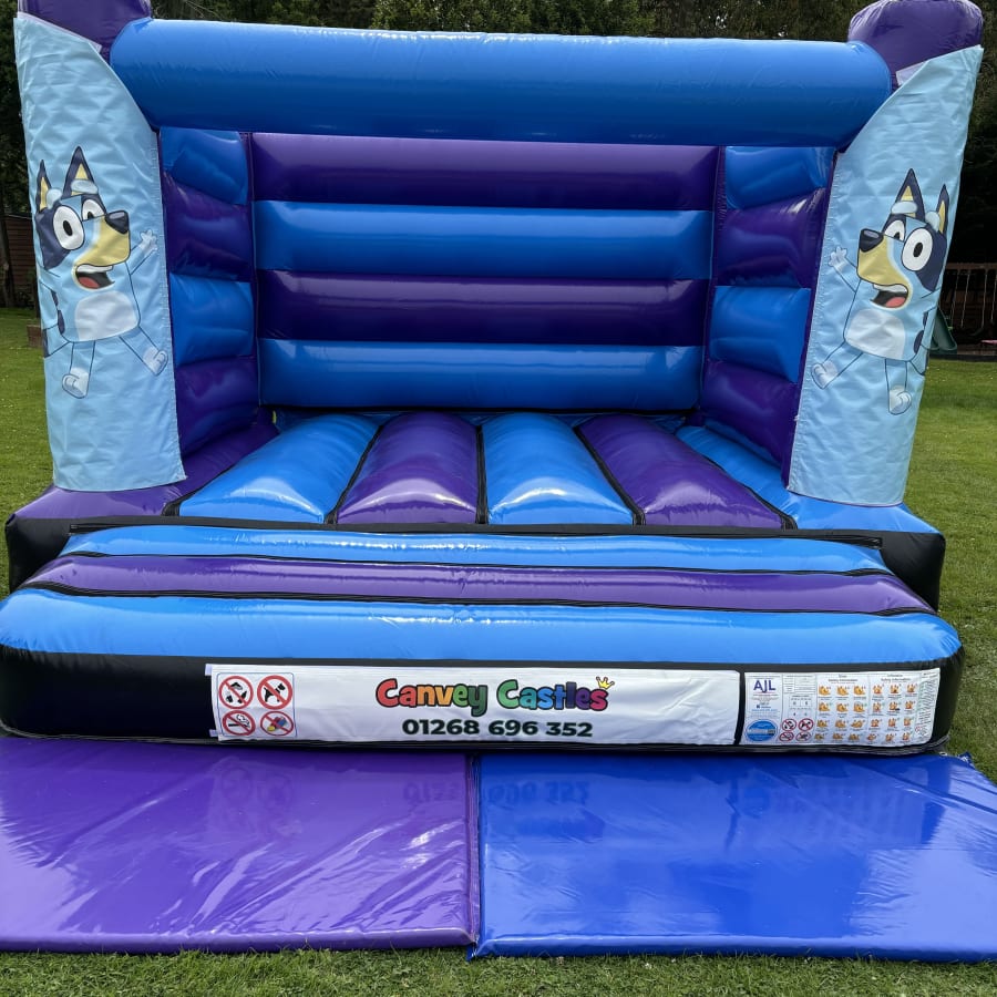 Introducing the vibrant and enchanting 12ft x 12ft blue and purple Bluey low height bouncy castle—an ideal addition to any children's party or event in Essex. This eye-catching bouncy castle, themed around the beloved character Bluey, offers endless hours of joy and entertainment for kids of all ages. Whether you're hosting a birthday party, family gathering, or community event, this bouncy castle is sure to be a hit!