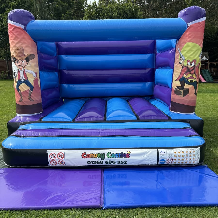 Add a splash of color and excitement to your next event with our 12ft x 12ft Blue and Purple Country and Western Low Height Bouncy Castle in Essex. Perfect for all kinds of celebrations, from birthday parties to family gatherings, this vibrant bouncy castle is designed to provide endless entertainment and joy for the little ones.