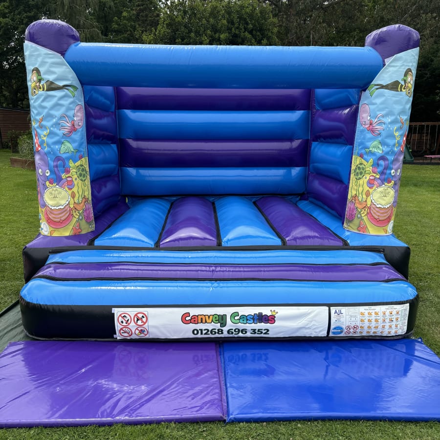 Make a Splash with Our 12ft x 12ft Blue and Purple Under The Sea Low Height Bouncy Castle