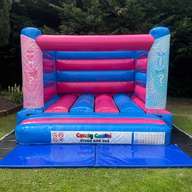 At Canvey Castles, we pride ourselves on offering reliable and hassle-free Canvey Castles 12ft x 12ft Pink and Blue Low Height Baby Reveal Bouncy Castle in Essex. Our experienced team delivers, sets up, and dismantles the bouncy castle, ensuring everything runs smoothly so you can focus on enjoying the day. We cover all areas throughout Essex, making it easy to bring the party to your doorstep—whether you’re hosting at home or booking a local venue.