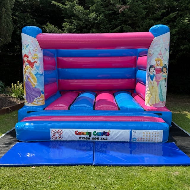 12ft x 12ft Pink and Blue Low Height Disney Princess Bouncy Castle for Magical Parties in Essex