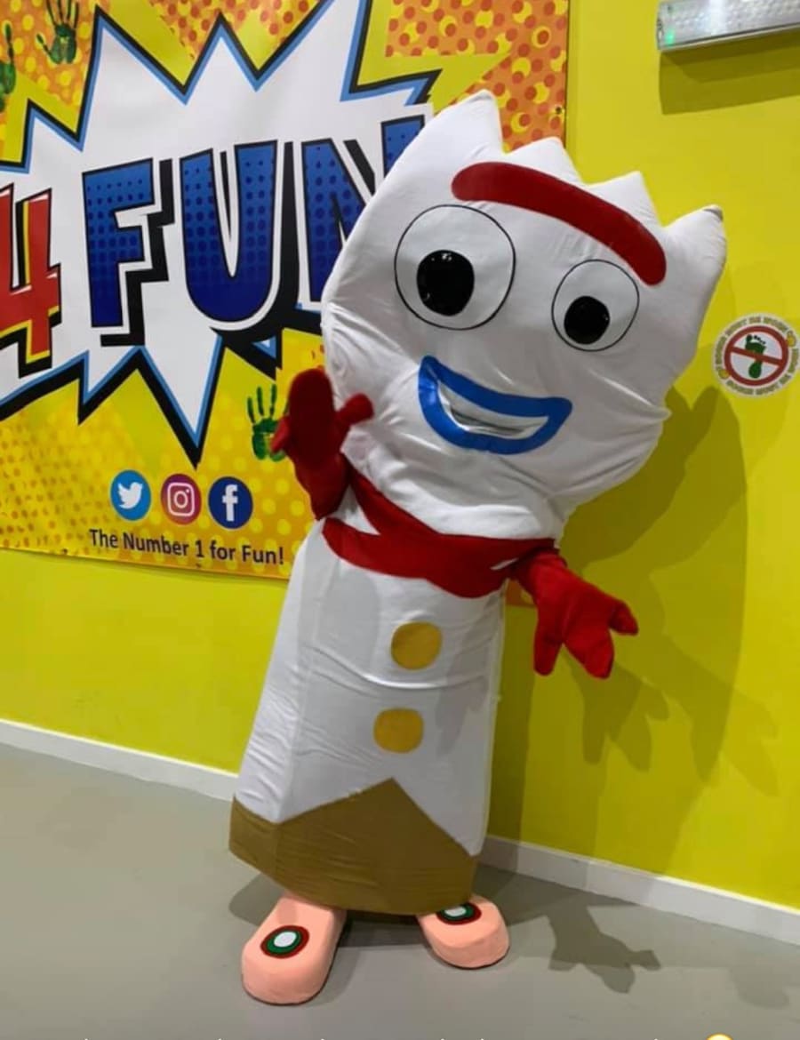 Forky Mascot Costume Hire, Canvey Island, Benfleet, Basildon and Southend and all Essex areas.