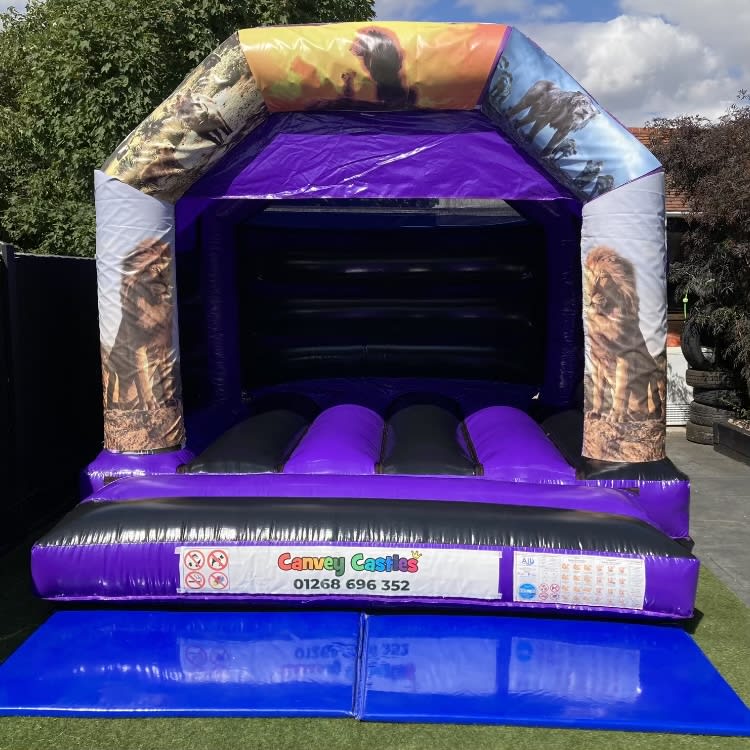 12ft x 12ft Black and Purple Lion King Bouncy Castle in Chelmsford, Southend, Brentwood, and Essex