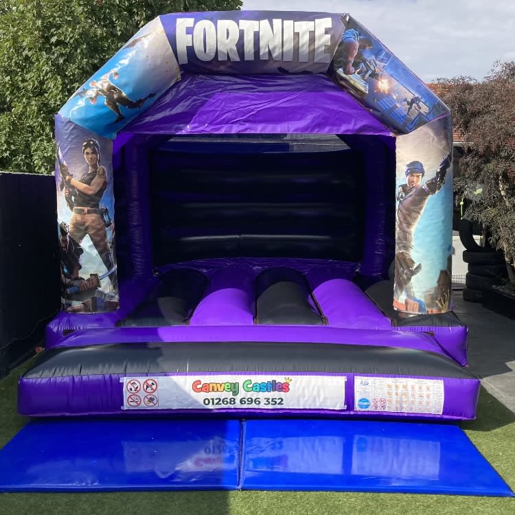 Add a touch of excitement to your next gathering with the 12ft x 12ft Black and Purple Fortnite Bouncy Castle. Book now and let the gaming adventures begin!