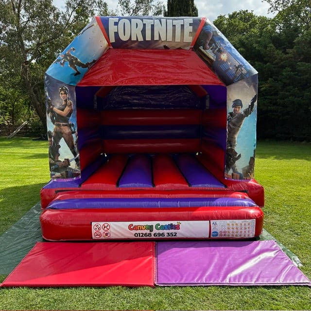 Don't miss out on the opportunity to make your event unforgettable with the 12ft x 15ft Red and Purple Fortnite Bouncy Castle. Contact us today to reserve your booking and experience the excitement that only a bouncy castle can bring. Let us be your trusted partner in creating fun-filled memories for you and your guests.