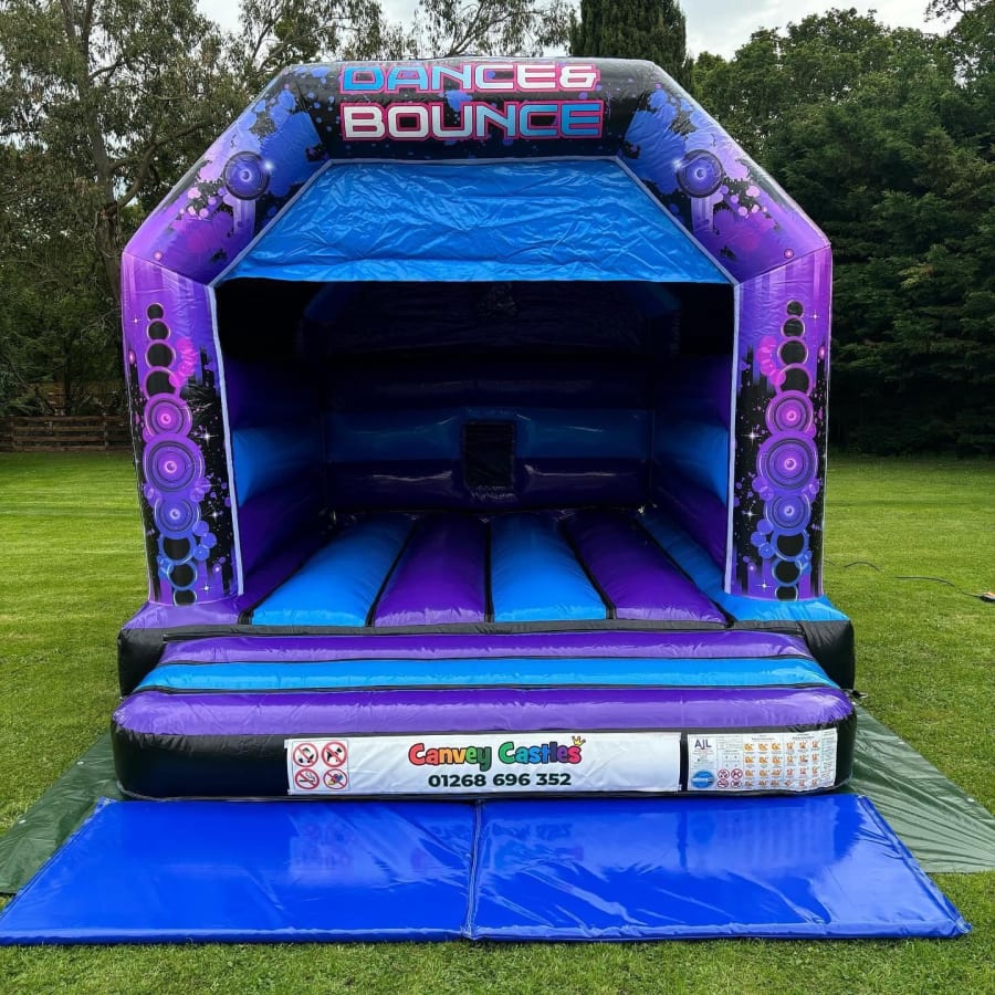 Make your next event a memorable one with the vibrant 12ft x 15ft Blue and Purple Dance and Bounce Bouncy Castle from Canvey Castles. Perfect for birthday parties, community events, or any celebration, this bouncy castle combines the fun of bouncing with a spacious area for dancing.