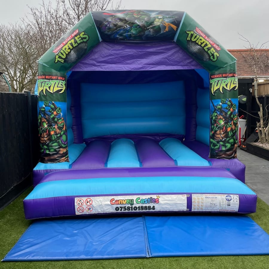 12ft x 12ft Light Blue and Purple Teenage Mutant Ninja Turtles Bouncy Castle in Southend, Brentwood, Chelmsford, and Essex