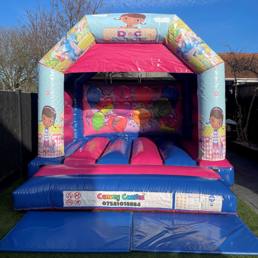 12ft x 12ft Pink and Blue Doc McStuffins Bouncy Castle in Chelmsford, Southend, Brentwood, and Essex