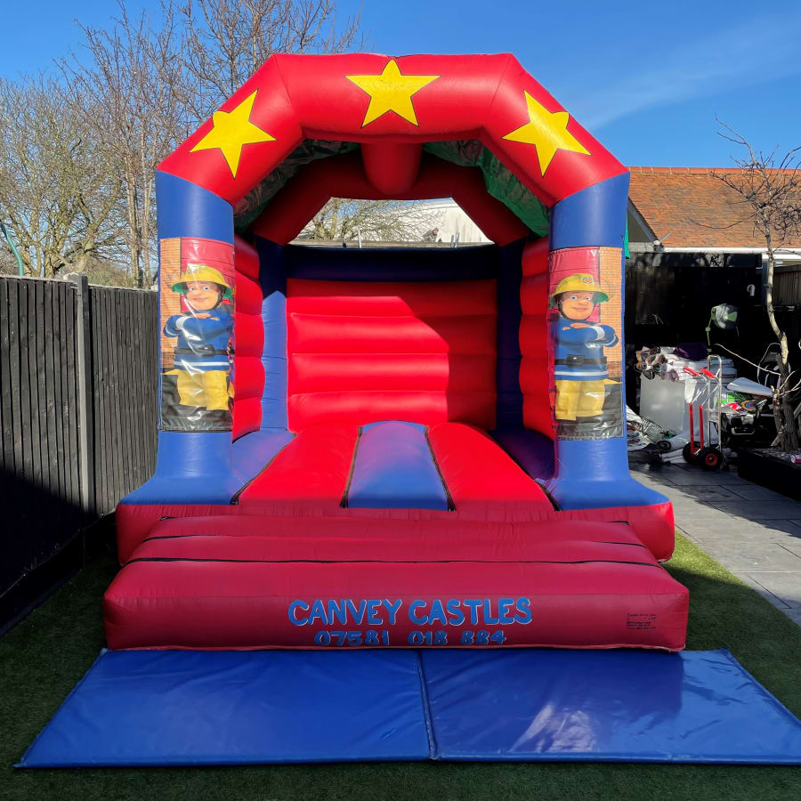11ft x 13ft Red and Blue Fireman Sam Bouncy Castle in Chelmsford, Southend, Brentwood, and Essex