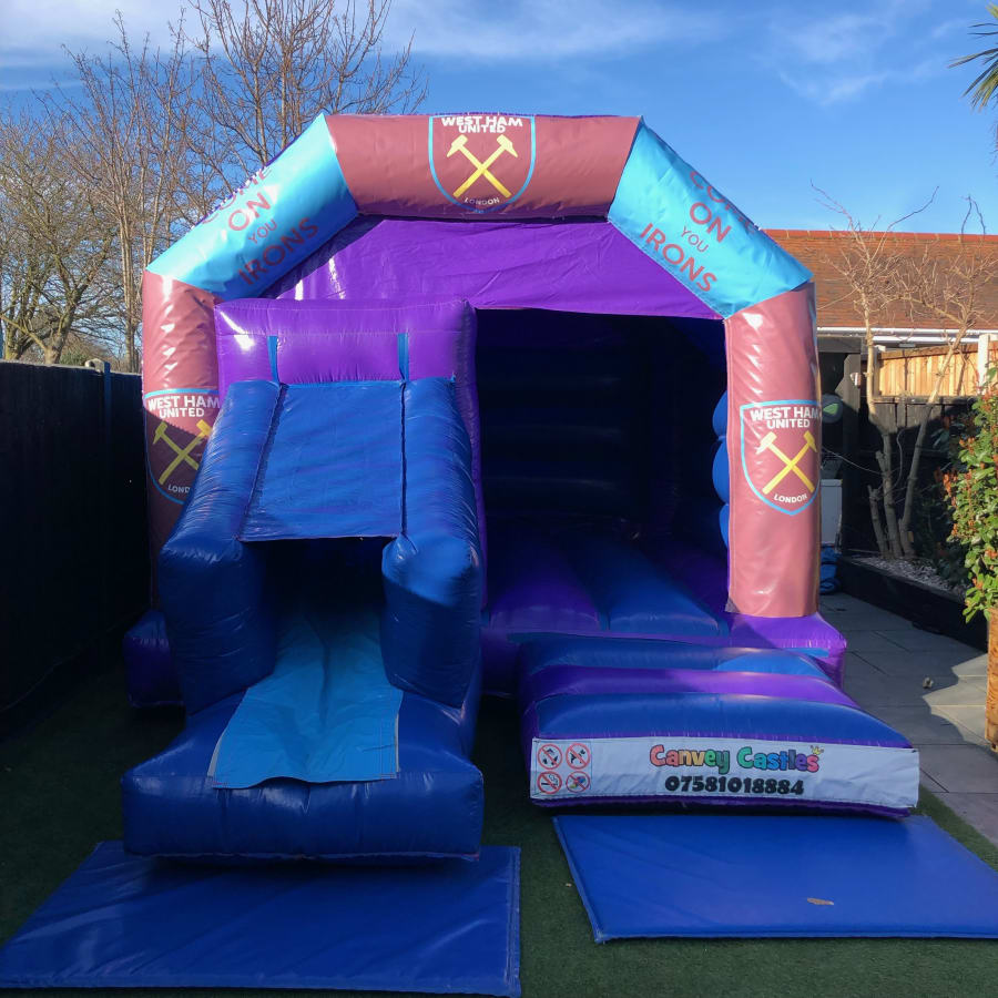 - Eye-Catching Design: The stunning blue and purple color scheme, coupled with the West Ham theme, makes this bouncy castle stand out at any event. It's not only a hit with the kids but also adds a splash of color to your party decor.
