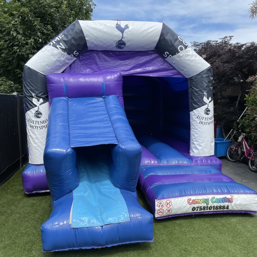 Exciting 12ft x 17ft Blue and Purple Tottenham Slide Combo Bouncy Castle
