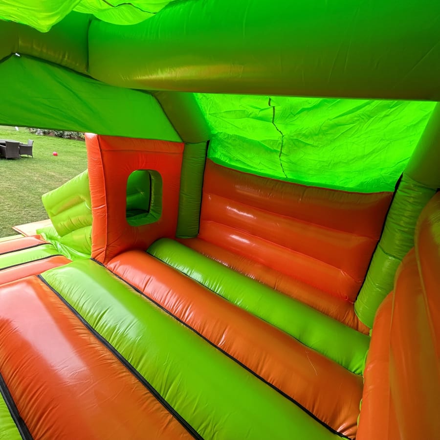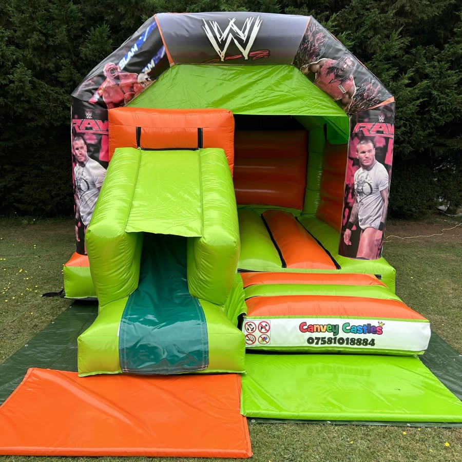 Transform Your Event with Our 12ft x 17ft Orange and Green Wrestling Slide Combo Bouncy Castle