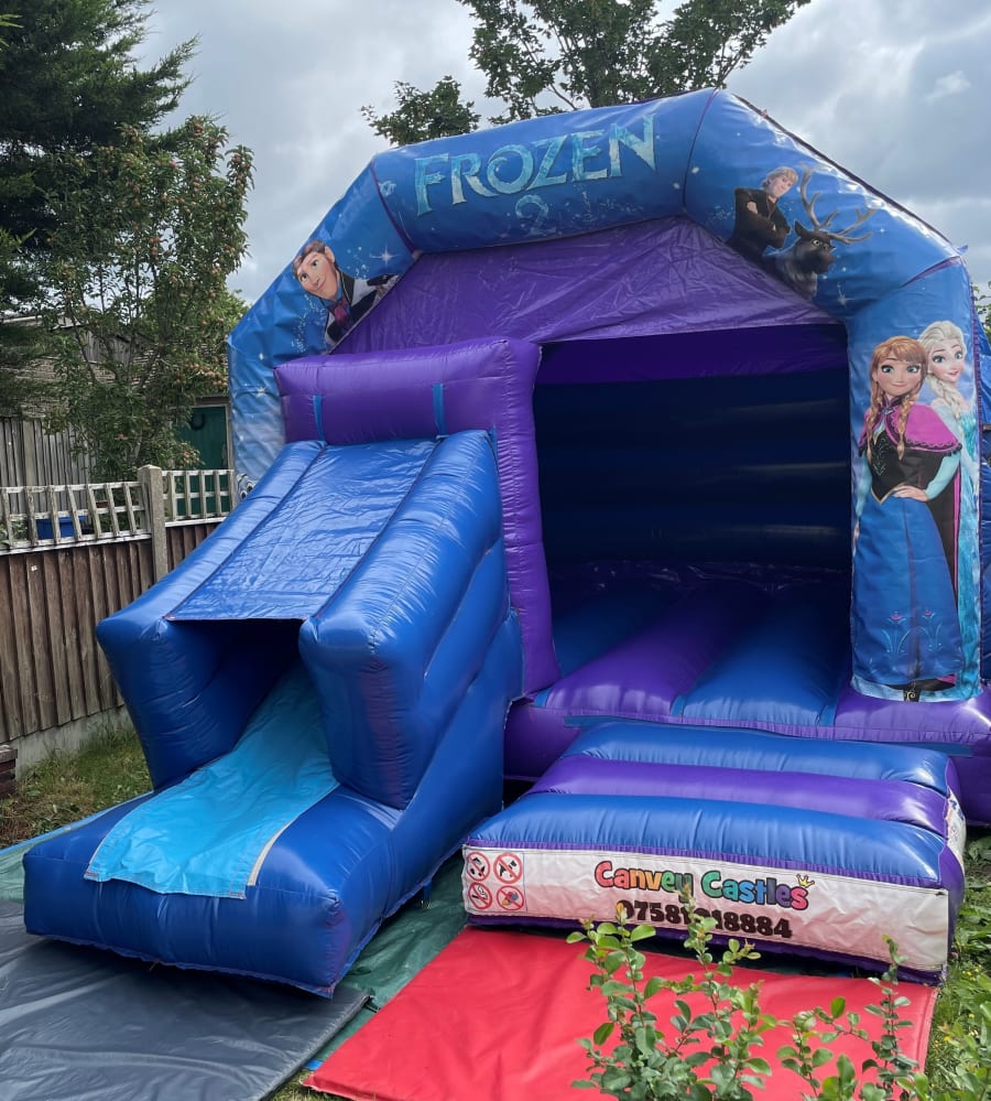 Don't miss out on the chance to make your child's party an unforgettable experience. Contact us today to reserve the 12ft x 17ft Blue and Purple Frozen 2 Slide Combo Bouncy Castle in Essex. Let us help you create a magical event filled with fun, laughter, and adventure.