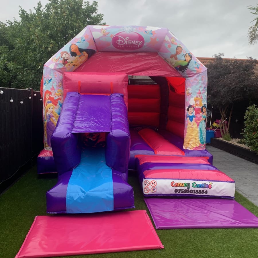 Don't miss out on the opportunity to make your child's special day even more magical. Contact us today to reserve the 12ft x 17ft Pink and Purple Disney Princess Slide Combo Bouncy Castle in Essex. Let us help you create an enchanting experience that your little ones will cherish forever!